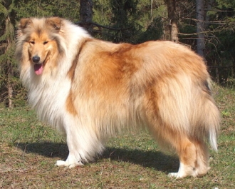 Happy ist eine „eindrucksvolle“ Hündin aus Russland, mit schönem dichten Fell, sehr gutem Gesichtsausdruck, vorzügliches Gebäude und flottem Gangwerk.