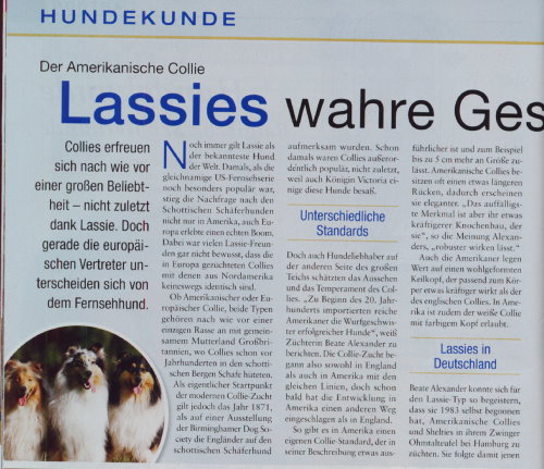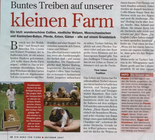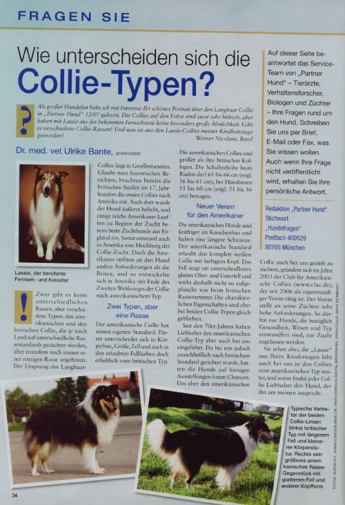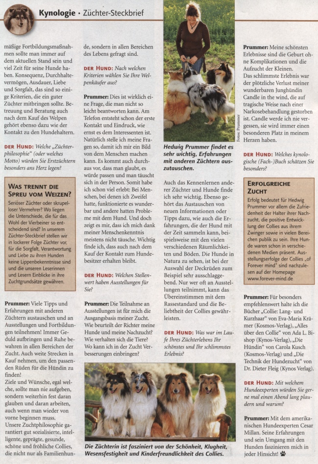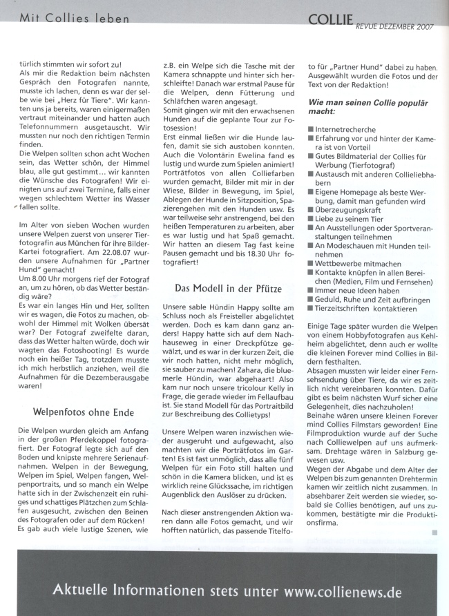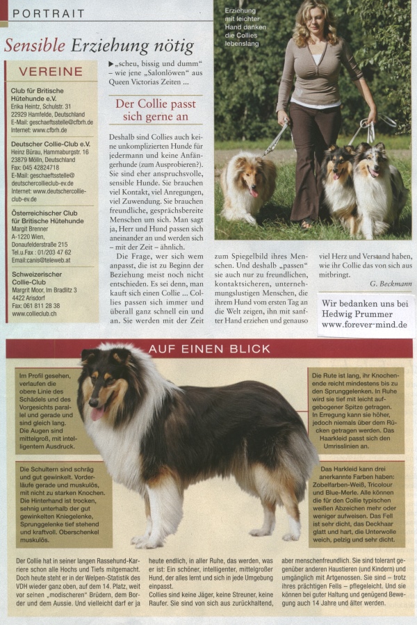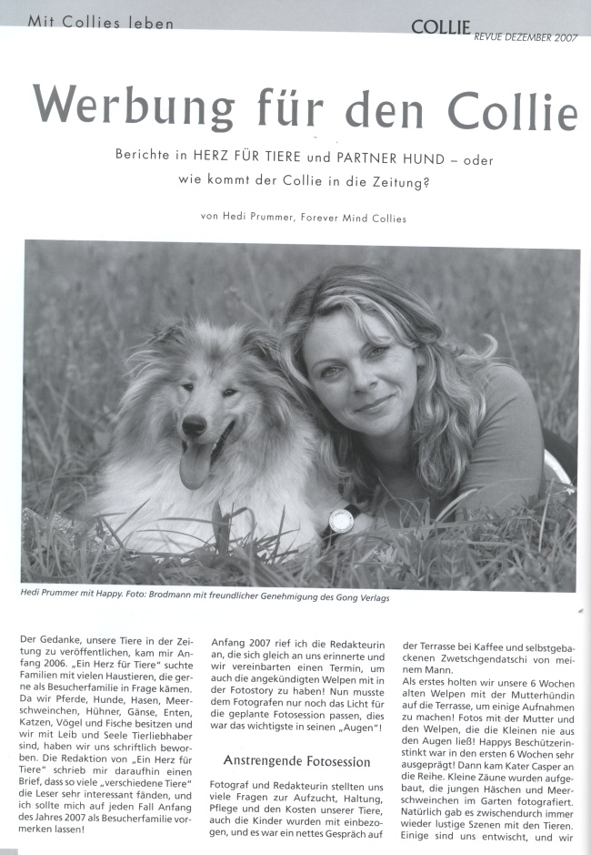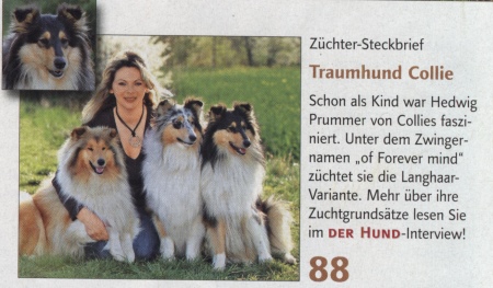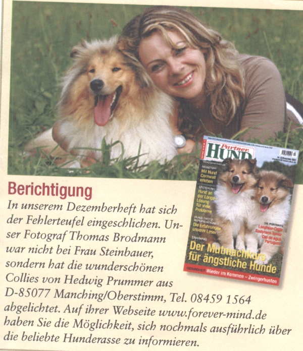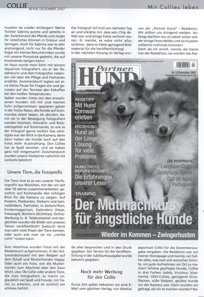 mit 5 Seiten "Forever mind Collies" in der Zeitschrift "Partner Hund" vertreten und wir