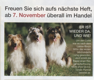 Wir haben zusätzlich das" Rasseportrait Collie" bekommen und sind im Dezemberheft