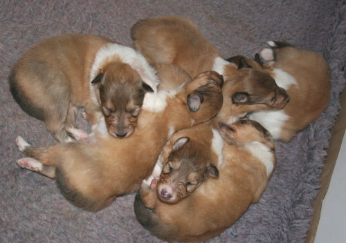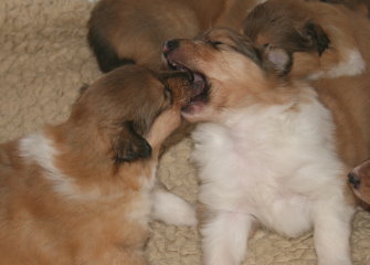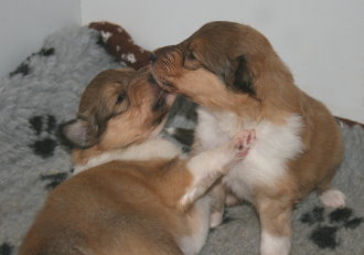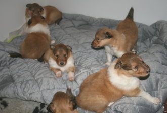 Wir sind "6" und bei Tante Kelly sind es "5" Welpen,