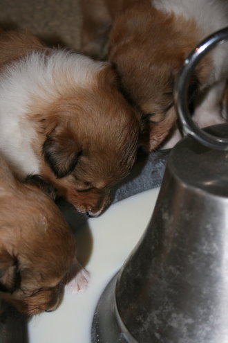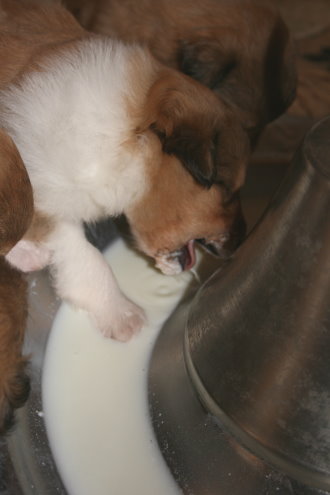Unsere erste Nahrung (Welpenmilch), die sehr lecker geschmeckt