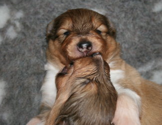 Wir freuen uns schon mit den " helleren" Welpen von Tante Happy