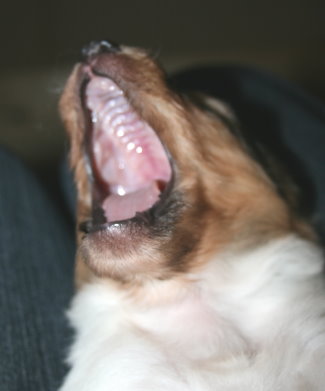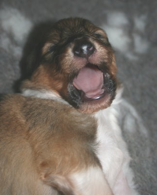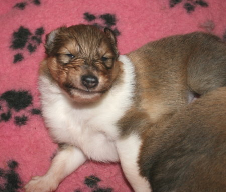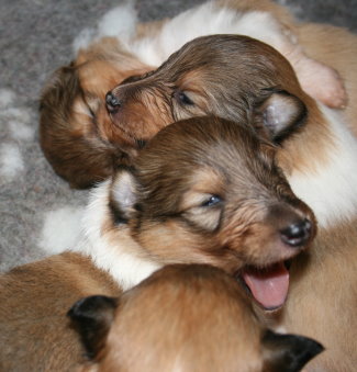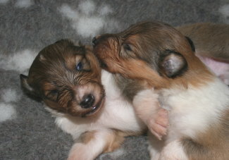 Wir schlafen noch sehr viel, trinken bei Mama an der Milchbar, schmusen, küssen uns gegenseitig, träumen und wir können schon sogar ein wenig knurren beim spielen und bellen....
