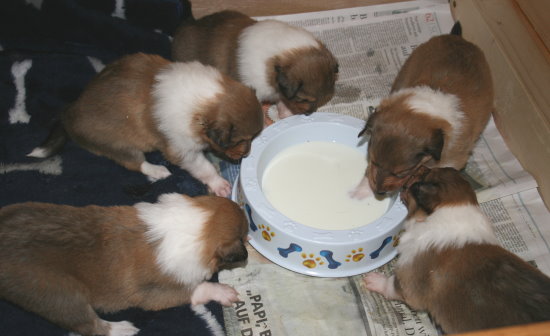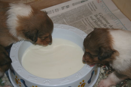 Unsere erste Nahrung (Welpenmilch), die sehr lecker geschmeckt hat
