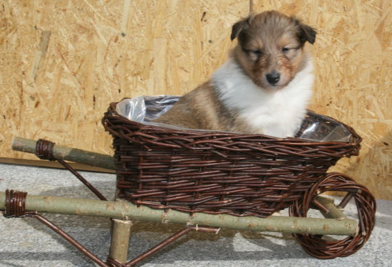 Bin ich nicht ein süsses dark-sable Mädchen im Schubkarrn?