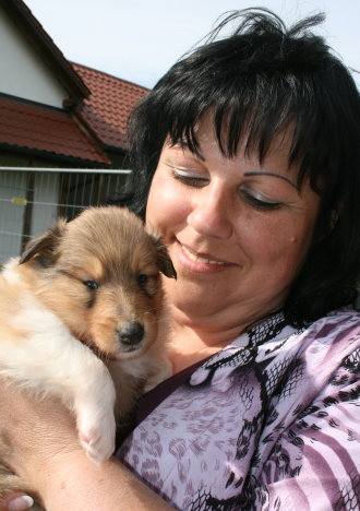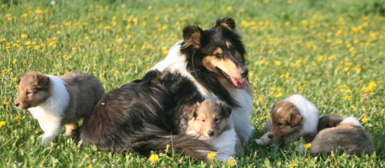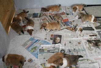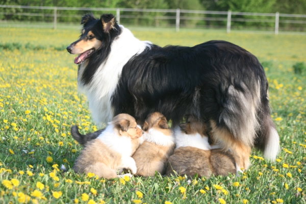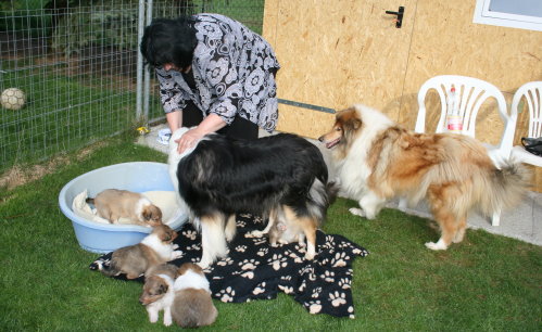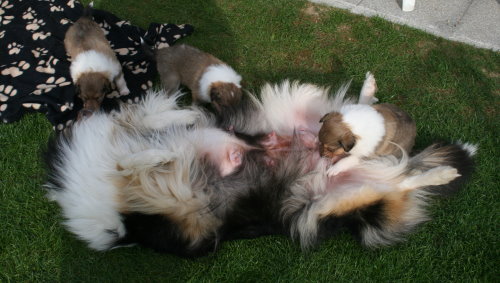 ihren 6 Welpen ihr eigenes Welpengehege besitzt geht hier im Häuschen