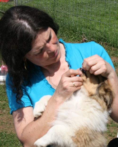 Wurfabnahme und Kontrolle durch die Zuchtwartin Frau Gunzelmann im Alter von 8 Wochen