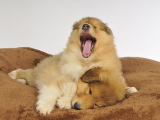 rechts auf dem Bild oben Baharany gähnend darunter liegend Brilliant Butterfly