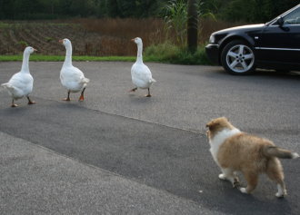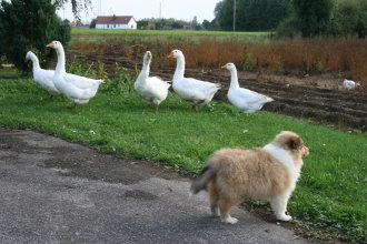 Bodyguard beim Gänsehüten und -treiben....