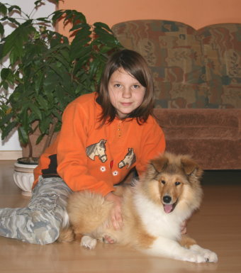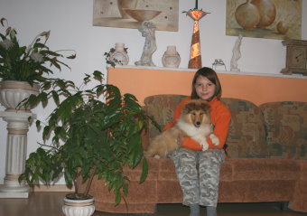 Franziska mit Butterfly bei den Prummers im Wohnzimmer