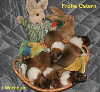 Jetzt sind unsere Welpen 1 Woche alt und haben ihr Geburtsgewicht bereits fast verdoppelt