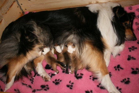 Kelly mit Welpen Destany in Love und Deluxe Divana